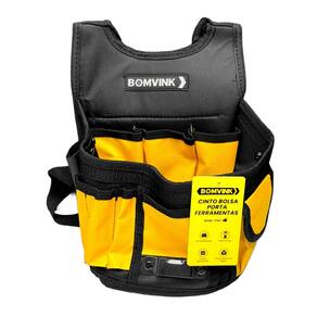 Organize e transporte suas ferramentas com facilidade usando este cinto multifuncional com alça removível. Produzido com material resistente, ele oferece espaço interno amplo com diversos compartimentos para guardar itens como chaves, alicates e parafusos.