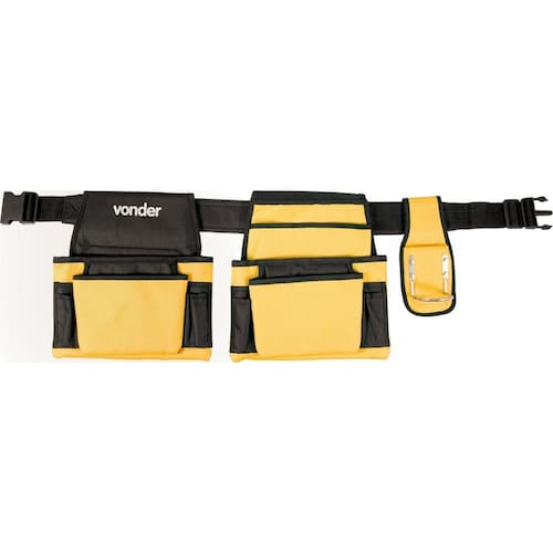 Conteúdo da embalagem1 CintoAplicações e dicas de usoUtilizado como porta-ferramentas em geralDestaques e diferenciaisPossui cinto ajustável em nylon com presilha para fixação, 3 porta-ferramentas e acessórios, sendo 18 bolsos/divisões e alça metálica para martelo DETALHES TÉCNICOS Material do cinto porta ferramentas: Lona reforçada Cor do cinto porta ferramentas: Preto e amarelo Ean: 7893946117184