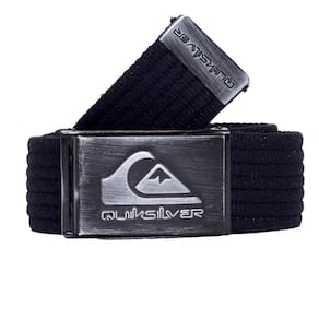 Cinto QuikSilver com fivela metálica preto fosco com logo em relevo, corpo em cadarço de algodão e ponteira metálica preto fosco.