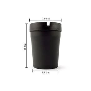 Cinzeiro fechado em formato de copo ideal para utilizar no seu carro, ajuda a manter o veiculo sem cinzas, pois seu corpo possui um deposito para manter as cinzas dentro do cinzeiro, assim ajudando a manter o carro limpo e organizado. O Cinzeiro é produzido em plástico PP, pode apagar diretamente nele sem problemas.