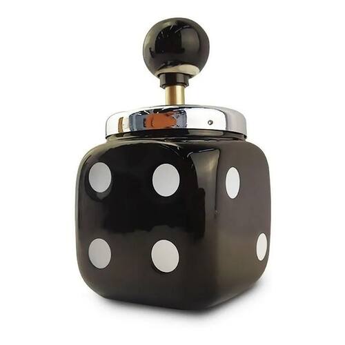 Cinzeiro Ceramica Com Tampa E Reservatório Preto