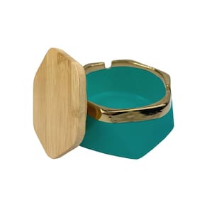 Cenicero Hexagonal Estilo Nórdico de Cerámica com Tapacuid, feito para complementar seu espaço com um toque de estilo nórdico e elegância. Suas dimensões o tornam compacto e versátil. Su diseño minimalista y líneas limpias le dan una apariencia atemporal que se adapta a diversas temáticas de decoração.La tapa incluida no solo añade un toque decorativo, sino que también ayuda a mantener las cenizas y el olor contenidos, manteniendo tu espacio fresco y limpio. Coloque este cenicero em sua sala de estar, estúdio ou escritório, y complementa tu estilo decorativo.Especificaciones:Material: Cerâmica, tampa de bambu Cor: branco, preto, verde turquesaForma: hexagonalDimensões: 11,5 x 11,5 x 5,3 cmMedidas de tampa: 10x10x1,5 cm Aprox.Peso líquido: 300 g aprox.