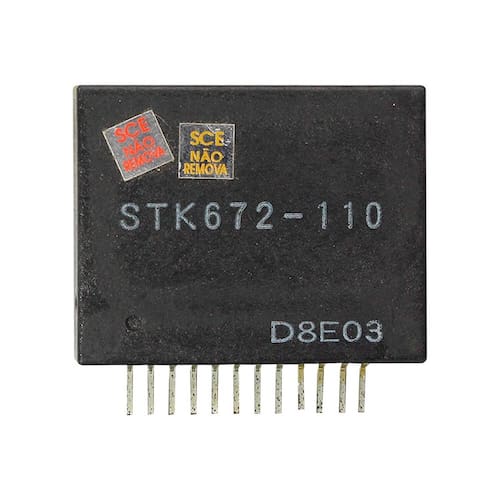 O STK672-110 é um helicóptero de corrente fixa unipolar tipo 2 fase de driver de motor de passo híbrido IC. Ele possui MOSFETs de energia no estágio de saída e um IC de distribuição de sinal de fase integrado. A incorporação de um CI de distribuição de fase permite que o STK672-110 controle a velocidade do motor com base na frequência de um sinal de clock de entrada externo. Suporta dois tipos de excitação para controle motor: excitação de 2 fases e excitação de 1-2 fases. Ele também fornece uma função para mudar a direção do motor. Características- A velocidade do motor pode ser controlada pela frequência de um sinal de relógio externo o sinal de pino CLOCK .- O tipo de excitação é comutado conforme o estado baixo ou alto do pino MODE. O modo é definido para excitação de 2 fases ou 1-2 fases na borda ascendente do sinal de clock.- Um pino de mudança de direção do motor o pino CWB é fornecido.- Todas as entradas são entradas Schmitt e resistores pull-up de 40quilohms típico: -50 a +100% são incorporados. - A corrente do motor pode ser ajustada alterando a tensão do pino Vref. Como um resistor de detecção de corrente de 0,22 mega é incorporado, uma corrente de 1 A é ajustada para cada 0,22V de tensão aplicada. - A faixa de frequência de entrada para o sinal de clock utilizado para o controle de velocidade do motor é de 0 a 25 kHz. - Faixas de tensão de alimentação: VCC1 = 10 a 42 V, VCC2 = 5,0 V +-5% - Este CI suporta correntes de operação do motor de até 1,8 A a Tc = 105 C e de até 2,65 A a Tc = 25 graus Aplicações: - Acionamento de motor de passo bifásico em unidades de fac-símile de envio/recebimento- Alimentação de papel em copiadoras, robôs industriais e outras aplicações que exigem acionamento de motor de passo de 2 fases Marca: Não Informado
