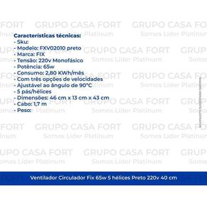 Circulador De Ar Fix 45Cm 65W Ventilador Ângulo De 90º Ar limpo e fresco nos seus ambientes! O ventilador Fix FXV02003 é um elemento útil para dar frescura no seu lar. Com o seu ótimo desempenho, a sensação térmica diminuirá. É um aparelho prático, fácil de montar e instalar.