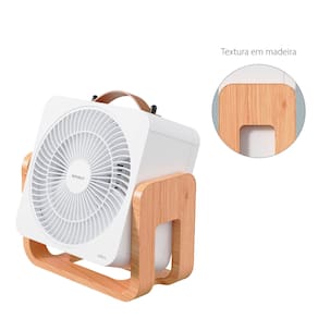 Design minimalista e estilo sofisticado O Circulador de Ar Spirit Cubics 2 combina elegância e praticidade em um produto compacto, ideal para qualquer ambiente. Seu design minimalista de apenas 20 cm de diâmetro e acabamento sofisticado com textura amadeirada, traz um toque refinado e moderno. A alça em couro, além de adicionar um charme único, facilita o transporte do dispositivo, permitindo que você leve o conforto e a frescor para qualquer cômodo da casa. é uma peça que se adapta perfeitamente ao estilo do ambiente.