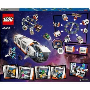 City Estação Espacial Modular - Lego 60433 Junte-se à tripulação espacial a bordo da Estação Espacial Modular LEGO City. Este anel espacial futurista é uma âncora orbital para acoplar naves espaciais e módulos de espaço, incluindo um satélite, uma bicicleta espacial, um ônibus espacial, um laboratório de ciências, uma oficina de reparos, uma cozinha, dormitórios e um biodome. Troque os módulos para criar seu próprio design de estação espacial ou junte-os ao ônibus espacial para formar um trem espacial legal Brinquedo de estação espacial LEGO City para maiores de 7 anos - Mime um astronauta iniciante com este conjunto de modelo de Estação Espacial Modular LEGO City, uma âncora em órbita para acoplar naves espaciais e cápsulas de sala detalhadas O que está na caixa - Inclui uma estação espacial de brinquedo, nave espacial, bicicleta espacial e cápsulas de quarto, incluindo laboratório de ciências, oficina, cozinha, dormitórios e biodomo, além de 6 minifiguras de astronautas Brinquedo espacial para cientistas iniciantes - As crianças podem trocar a nave espacial e os módulos da cápsula espacial para criar seu próprio design de estação espacial e conectá-los ao ônibus espacial para criar um divertido trem espacial Guia de construção digital - Leve seu entusiasta do espaço em uma divertida aventura de construção com o aplicativo LEGO Builder, onde as crianças podem ver modelos de todos os ângulos enquanto constroem Um presente divertido para os amantes do espaço - Dê este conjunto como presente de feriado ou aniversário para entusiastas do espaço e fãs de brinquedos espaciais legais com 7 anos ou mais Conecte-se a outros conjuntos LEGO vendidos separadamente - As cápsulas modulares e a espaçonave neste conjunto apresentam o sistema de bloqueio de ar espacial para conexão com outros conjuntos compatíveis com temas espaciais Brincadeira sem limites - Os conjuntos espaciais LEGO City vêm com veículos realistas, estruturas detalhadas e personagens inspiradores que fundem fantasia e realidade para brincadeiras imaginativas sem limites Dimensões - A estação espacial completa neste conjunto de 1.097 peças mede mais de 9 cm de altura, 40 cm de largura e 35 cm de profundidade A Estação Espacial Modular LEGO City tem um total de 1.097 peças e foi projetada para maiores de 7 anos. Homologação Inmetro: 7470/2022-BRI-1