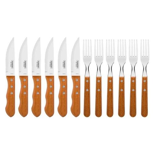 Para saborear aquele churrasco especial com a família e os amigos, conte com o conjunto para churrasco Dynamic da Tramontina com lâminas em aço inox e cabos de madeira natural com 12 peças. Desenvolvido para lhe proporcionar praticidade e beleza à sua mesa, ele tem peças produzidas com lâminas em aço inox, onde as facas tem maior durabilidade em seu fio de corte devido ao tratamento térmico e os garfos contam com maior resistência devido a estampagem. Seus cabos são em madeira natural e contam com rebites de alumínio que os deixam com um belíssimo design.