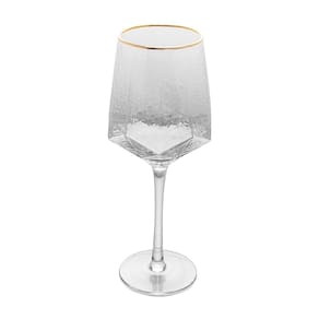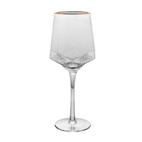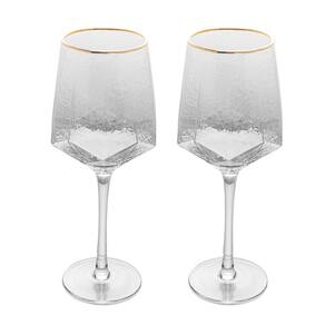 Cj 2 Taças de Cristal Martelado Transparente P/Vinho C/Borda Dourada Taj 600ml Wolff
