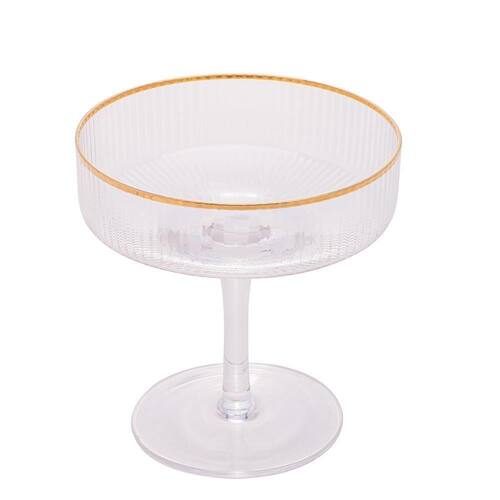 Cj 2 Taças Sobremesa/Drink 200Ml Vidro Com Borda Dourada Lines - Wolff Lindo jogo de taças para sobremesas, coquetel, drinksCom detalhes em relevoCapacidade para 200mlBorda DouradaLinha Coupe Lines Material: Vidro Sodo-CalcicoConteúdo da Embalagem: 02 TaçasEspecificações Técnica:Medidas: 10,5x10,5x11cm Comprimento X Largura X Altura Capacidade:200mlPeso: 110grMarca: WolffOrigem: ImportadoCuidados de Limpeza e Uso:Lavar com detergente neutro, esponja macia e secar imediatamenteNão usar esponja de açoNão usar produtos químicosSuporta máquina de lava-louçasPara realçar o brilho usar uma flanela