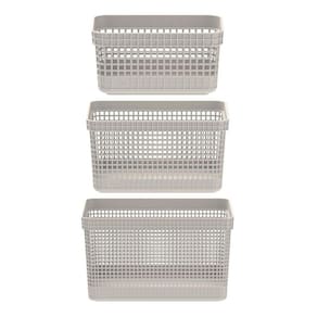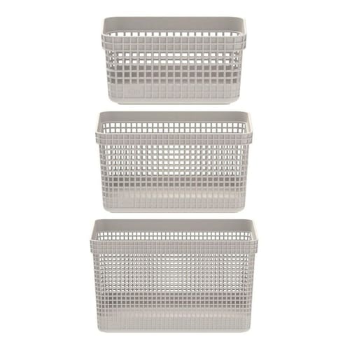 Cj 3 Caixas Organizadoras Cestos Grid Closet Quarto Bebê Cor: Bege F6061 MAPLE DECOR DESCRIÇÃO Os cestos organizadores são funcionais e multiuso produzidos em plástico para organização e otimização de ambientes como cozinhas, lavanderias, closets, banheiros, escritórios, refeitórios, despensas, lojas. Possui paredes vazadas e pegas para facilitar o manuseio, e tampas tornando-os empilháveis e modulares. Ideal para organizar todos os ambientes, por ser um cesto grande é muito útil para organizar brinquedos, mantas, almofadas e etc, além de úteis na organização, são peças que podem ser usadas como decoração. Com estes cestos você pode deixar a sua criatividade fluir. cesto organizador de bancada cesto organizador quarto de bebê caixa sem tampa para escritóro pode ser utilizada como floreira disponível em Material: Matéria prima é proveniente de resíduos coletados do litoral do brasil com o propósito de evitar que este plástico chegue até o mar ou rios. Produto 100% produzido com plástico pós-consumo. Cores: Preto, Cinza, Branco, Bege e Azul Glacial. 01 un - Cesto 20 Litros: Altura: 22.2cm x Largura: 28cm x Profundidade: 38cm 01 un - Cesto 8 Litros: Altura: 15.2cm x Largura: 28cm x Profundidade: 22cm 01 un - Cesto 2,5 Litros: Altura: 10.2cm x Largura: 20cm x Profundidade: 14cm Marca: Não Informado