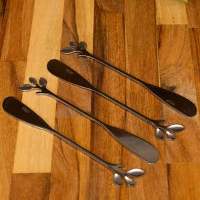 O Conjunto com 4 espátulas de aço inox Leaves Prata da Wolff é a escolha refinada para adicionar um toque de elegância e praticidade à sua experiência culinária. Cada espátula é cuidadosamente projetada para unir funcionalidade e estilo, elevando o preparo e o serviço dos seus pratos.