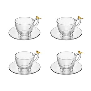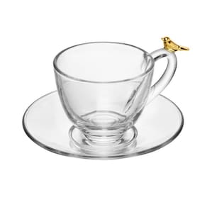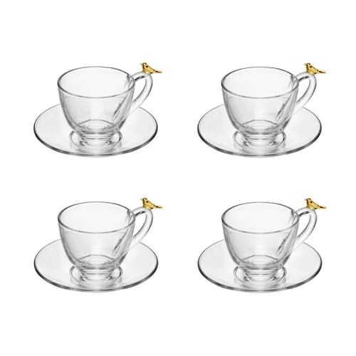 O Conjunto de xícaras e pires para café decorados com um encantador design de pássaro dourado, proporcionando um toque de elegância e natureza à sua mesa.