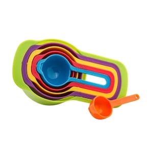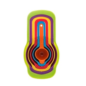 Conjunto de colheres medidoras. Perfeito para o uso diário na cozinha. Práticas e simples na hora de separar doses e porções durante a receita e sendo charmosas com seus design coloridos.