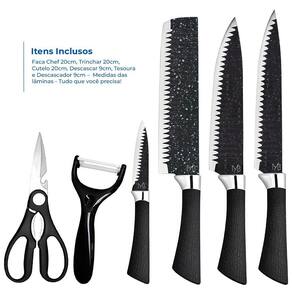 Transforme sua experiência na cozinha com esse kit de facas completo e de alta performance. O conjunto monblanc conta com 6 peças essenciais para o preparo de qualquer prato, unindo qualidade, design moderno e praticidade no dia a dia. -------------------- Itens inclusos - 1 faca chef 20cm - 1 faca trinchar 20cm - 1 cutelo 20cm - 1 faca de descascar 9cm - 1 tesoura multiuso - 1 descascador de cerâmica 9cm ------------------- Material de alta qualidade - lâminas em aço inox com revestimento antiaderente - maior resistência ao desgaste e durabilidade - corte preciso e sem esforço -------------------- Cabo ergonômico e antiderrapante - toque suave com textura antiderrapante - mais conforto e firmeza no manuseio -------------------- Design moderno e funcional - estilo alemão refinado com acabamento sofisticado - estojo elegante para armazenagem e organização - ideal para chefs, cozinheiros e uso doméstico ------------------- Uso multifuncional - corte de carnes, vegetais, frutas, peixes e mais - lâmina com áreas específicas para cada tipo de corte: - frontal: vegetais e frutas pequenas - central: cortes diversos - traseira: alimentos mais resistentes -------------------- Dimensões do estojo: 36,5 x 21,5 x 3cm -------------------- : 90 dias -------------------- Sobre nós: Especificações técnicas: Itens inclusos- 1 faca chef 20cm- 1 faca trinchar 20cm- 1 cutelo 20cm- 1 faca de descascar 9cm- 1 tesoura multiuso- 1 descascador de cerâmica 9cm