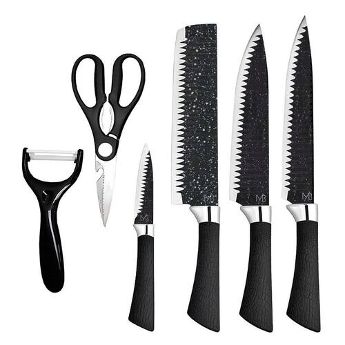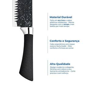 Transforme sua experiência na cozinha com esse kit de facas completo e de alta performance. O conjunto monblanc conta com 6 peças essenciais para o preparo de qualquer prato, unindo qualidade, design moderno e praticidade no dia a dia. -------------------- Itens inclusos - 1 faca chef 20cm - 1 faca trinchar 20cm - 1 cutelo 20cm - 1 faca de descascar 9cm - 1 tesoura multiuso - 1 descascador de cerâmica 9cm ------------------- Material de alta qualidade - lâminas em aço inox com revestimento antiaderente - maior resistência ao desgaste e durabilidade - corte preciso e sem esforço -------------------- Cabo ergonômico e antiderrapante - toque suave com textura antiderrapante - mais conforto e firmeza no manuseio -------------------- Design moderno e funcional - estilo alemão refinado com acabamento sofisticado - estojo elegante para armazenagem e organização - ideal para chefs, cozinheiros e uso doméstico ------------------- Uso multifuncional - corte de carnes, vegetais, frutas, peixes e mais - lâmina com áreas específicas para cada tipo de corte: - frontal: vegetais e frutas pequenas - central: cortes diversos - traseira: alimentos mais resistentes -------------------- Dimensões do estojo: 36,5 x 21,5 x 3cm -------------------- : 90 dias -------------------- Sobre nós: Especificações técnicas: Itens inclusos- 1 faca chef 20cm- 1 faca trinchar 20cm- 1 cutelo 20cm- 1 faca de descascar 9cm- 1 tesoura multiuso- 1 descascador de cerâmica 9cm Marca: Não Informado
