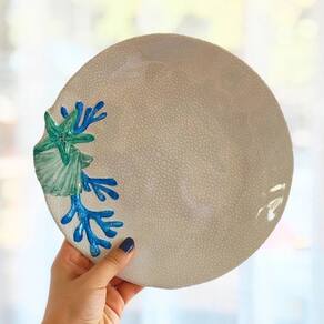 Há peças que não apenas servem alimentos — elas contam histórias. O Prato para Sobremesa Marinho Concha do Mar Azul é uma dessas. Inspirado na beleza silenciosa do oceano, traz em sua superfície um desenho delicado de concha e estrela do mar entre corais vibrantes, como se cada refeição fosse acompanhada pela brisa do litoral. Com 23,5cm de diâmetro e fabricado em melamina de alta qualidade, ele une leveza, resistência e um visual que transforma qualquer refeição em um momento de contemplação estética. É a escolha certa para quem deseja sair do óbvio sem abrir mão da praticidade. Por que escolher este prato? • Estampa artística – concha e estrela do mar com corais em tons que evocam frescor e vida• Estilo náutico contemporâneo – elegante sem ser exagerado• Alta resistência – feito em melamina durável, ideal para o dia a dia ou ocasiões especiais• Composição harmônica – combina com outras peças da coleção oceano Marca: Não Informado