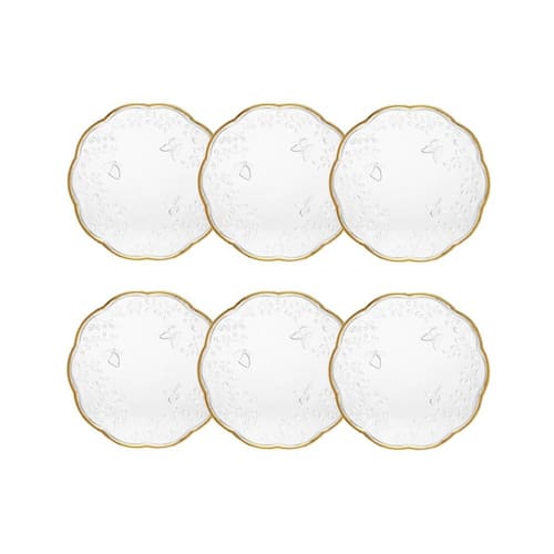 Adicione um toque de luxo às suas sobremesas com o Conjuntos de Pratos para Sobremesa New Butterfly com Fio de Ouro da Lyor. Feito em cristal ecológico e adornado com detalhes em fio de ouro, este conjunto de pratos é perfeito para transformar cada sobremesa em um momento de sofisticação e elegância.