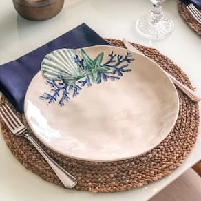 Há peças que não apenas servem alimentos — elas contam histórias. O Prato Raso Marinho Concha do Mar Azul é uma dessas. Inspirado na beleza silenciosa do oceano, traz em sua superfície um desenho delicado de concha e estrela do mar entre corais vibrantes, como se cada refeição fosse acompanhada pela brisa do litoral. Com 29,5cm de diâmetro e fabricado em melamina de alta qualidade, ele une leveza, resistência e um visual que transforma qualquer refeição em um momento de contemplação estética. Perfeito para pratos principais em almoços tropicais, jantares ao ar livre ou mesas descontraídas com um toque de sofisticação náutica. É a escolha certa para quem deseja sair do óbvio sem abrir mão da praticidade. Por que escolher este prato? • Estampa artística – concha e estrela do mar com corais em tons que evocam frescor e vida• Estilo náutico contemporâneo – elegante sem ser exagerado• Alta resistência – feito em melamina durável, ideal para o dia a dia ou ocasiões especiais• Composição harmônica – combina com outras peças da coleção oceano Marca: Não Informado
