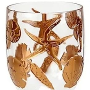 Cj 6 Taças de Acrílico C/Detalhes Fundo do Mar Dourado 474ml Entrecasa