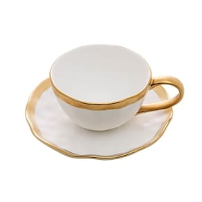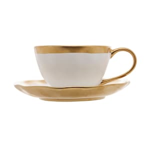A LINHA DUBAI É COMPOSTA POR PEÇAS CONTEPORÂNEAS MARCADAS POR BELEZA E MODERNIDADE. A XÍCARA PARA CAFÉ É PRODUZIDA EM PORCELANA E FORNECIDA JUNTAMENTE AO PIRES QUE SE DESTACA PELO DOURADO MARCANTE E BORDA SEMI IRREGULAR QUE ACRESCENTA O EFEITO DE ONDULAÇÕES. O CONJUNTO IDEAL PARA FASCINAR OS CONVIDADOS NA ARTE DE RECEBER.