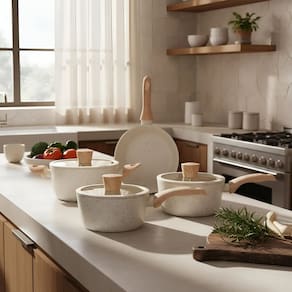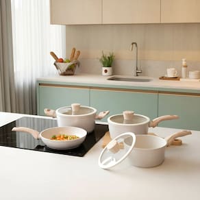 DIFERENCIAIS: o conjunto de Panelas Brinox Antiaderente Ceramic Life 4 Peças Sirius com Indução Vanilla tem estrutura de alumínio que distribui o calor de forma homogênea. O revestimento cerâmico antiaderente conta com a tecnologia Mineral Resist. Este é um produto PFOA Free, isto é, não libera toxinas. ANTIADERENTE: o revestimento interno do conjunto de panelas 4 peças da Linha Ceramic Life Sirius/Brinox é fabricado com antiaderente Mineral Resist, que contém partículas de cerâmica em sua composição. Além de reduzir a necessidade de óleos, facilita a limpeza, pois os alimentos não grudam. Essa tecnologia traz maior praticidade, segurança (é PFOA Free) e comodidade para o seu dia a dia na cozinha. MATERIAIS: o conjunto de Panelas Brinox Antiaderente Ceramic Life 4 Peças Sirius com Indução Vanilla é fabricado na cor Vanilla com estrutura em alumínio que cozinha por igual e mais rápido. A tampa flat é de vidro temperado, borda de silicone e saída para o vapor, o que torna a experiência de cozinhar ainda mais fascinante. Os cabos e alças são fabricados em soft-touch de efeito amadeirado. Livre de PFOA, o revestimento interno é com antiaderente Mineral Resist. TIPOS DE FOGÕES: É compatível com fogões a gás, elétricos e de indução. ITENS INCLUSOS: