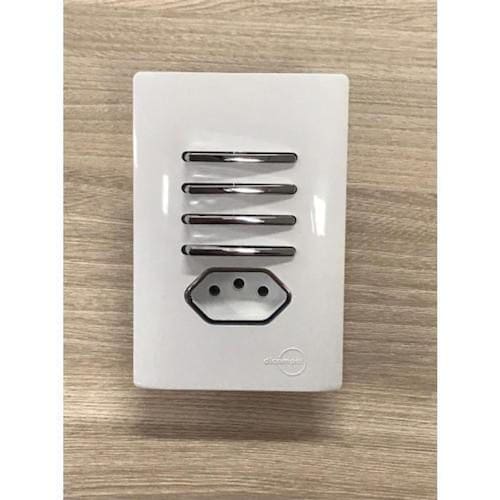 Anuncio contém: 1. cj interruptor quadruplo simples + tomada 20a com suporte especial 4x2-dicompel novara branco cromado- dnv1200/186brcr Ou seja: 1 . placa para 4 interruptores + tomada com suporte 4x2 - dicompel novara branco - dnv1200/193br 2 . modulo interruptor duplo simples especial - dicompel novara cromado - dnv1200/74cr 1. modulo tomada 20a - dicompel novara branco cromado - dnv1200/39cr Detalhes do produto: Com um design fantástico, minimalista e de fácil instalação a dicompel inovou no mercado de tomadas e interruptores modulares. A linha novara conta com uma pintura cromada automotiva, assim não descasca e nem perde sua cor. Seus interruptores, pulsadores, conjugados e tomadas dão 5 anos de garantia. Sempre tem uma novara que combina com o que você deseja;