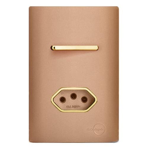 Cj Interruptor Simples + Tomada 20A Com Suporte 4X2 - Dicompel Novara Ouro Rose Gold - Dnv1500/21Orgd