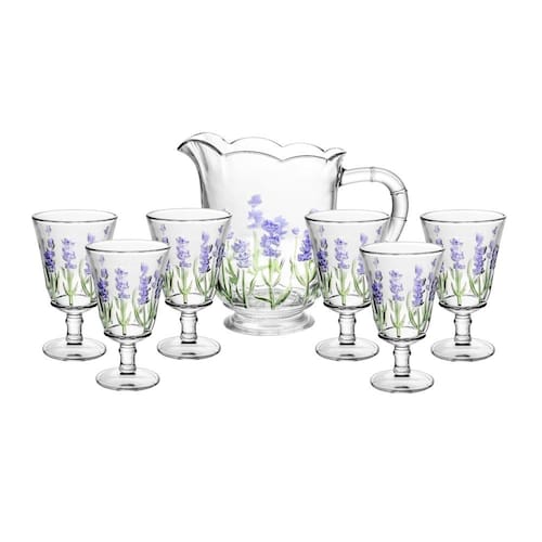 O Conjunto Jarra com 6 Taças de Cristal Lavanda Hand Painting da Lyor, é uma coleção que une a delicadeza da lavanda com o toque artístico da pintura à mão. Com uma jarra de 1,3 litros e seis taças de 240ml cada, este conjunto destaca-se pelo design encantador, elevando a experiência de servir.