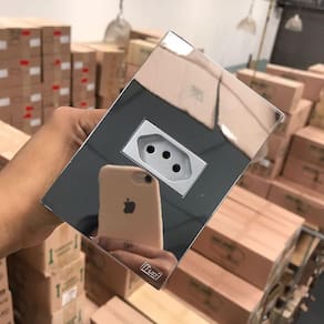 Anuncio contém: 1 - cj tomada 10a horizontal 4x2 - recta espelhada gloss modulo prata - brg11177-5eb Ou seja: 1 - placa para 1 modulo horizontal sem suporte 4x2 - recta espelhada brilhante gloss - brg11513-4eb 1 - suporte 3 módulos 4x2 - blux home - bh10420-5 1 - modulo tomada 10a - recta prata gloss - brg11779-1pr Detalhes do produto: Inovando nas cores, acabamentos e possibilidades de combinacoes, a recta ainda possui as exclusivas 4 entradas independentes para fios e cabos, sistema de prensa cabos e aditivo de protecao para raios uv, alem da garantia de 15 anos, que so a b.Lux oferece. Marca: Blux Recta Espelhada Gloss