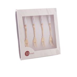 04 Garfos p/Aperitivo Aço Inox Dourado c/Cabo Ceram.Branco