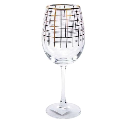 04 Taças p/Agua de Cristal Quadriculado Dourado 440ml