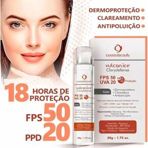 Vulcan Ice Clarydefense Fps50 Uva20 possui ação multifuincional especialmente desenvolvido para proteger e iluminar peles que apresentam alterações pigmentares como: melasmas, efélides, melanose solar e hipercromias pós inflamatórias e também para peles com surgimento de hipercromias faciais. Sua fórmula leve atua através da dermoproteção solar, protege a pele das toxinas do ambiente e do clima.