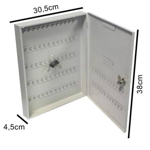Ideal para organizar e guardar as chaves que estão em uso ou não, evita perdas de chaves, além de proporcionar maior controle das chaves e acesso utilizado por empresas, residências, escolas, estacionamentos, portarias e outros locais. Compacto, mantém o padrão estético do ambiente disponibilidade para fixar na parede ou em armário. A porta possui chave para abertura e já são fornecidas duas chave.