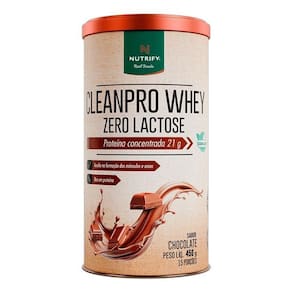 Cleanpro whey protein zero lactose chocolate nutrify 450g O cleanpro whey protein zero lactose chocolate nutrify é a nova opção de whey zero lactose da nutrify, desenvolvido para quem busca uma suplementação proteica leve, sem lactose e livre de compostos artificiais.