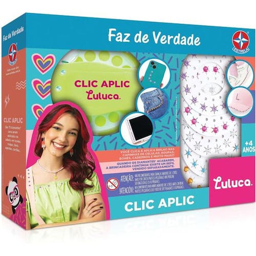 Clic Aplic da LulucaTudo fica divertido e fashion com Clic Aplic da Luluca São 75 brilhos em formato de diamante para serem aplicados em bonés, roupas, tênis, agendas, cadernos, cartões e cabelos É muito fácil de usar! os diamantes são contas brilhantes com adesivo, nao resistente a água