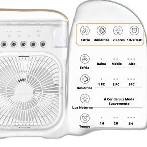 Linha: Ventilador de Mesa Climatizador 10W - Mini Ar Ventilador Iluminação: Com luz É silencioso: Sim