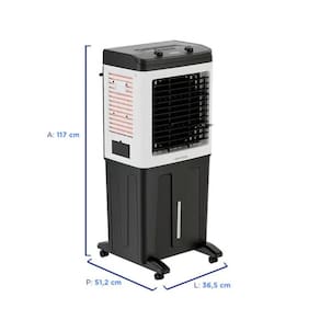 Alta capacidade! O reservatorio do produto pode acomodar ate 80 litros de agua, podendo tambem ser adicionado gelo para manter a refrigeracao do ambiente. Possui tambem protecao para a bomba de agua em casos de falta de agua no reservatorio.