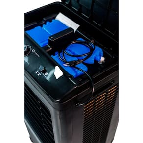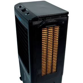 Descrição do Produto • Super econômico • Sistema evaporativo tipo colmeia • Oscilação dupla • Três velocidades de ventilação • Três velocidades de resfriamento • Capacidade do reservatório 45 litros • Fácil transporte – 4 rodas de plástico • Permite o uso de gelo • Cor preta
