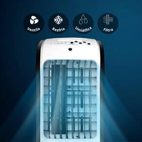 *Multifunção 3 em 1: Opera como Ventilador(com 3 velocidades), Umidificador (melhora a qualidade do ar em climas secos) e Climatizador (resfria o ambiente usando água fria ou gelo).
