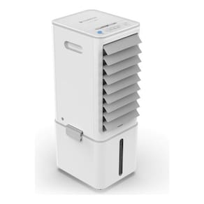 Este climatizador possui um reservatorio de 8,4 litros, garantindo longas horas de funcionamento sem a necessidade de reabastecimento frequente. Sua voltagem e de 127V (110V), adequada para a maioria das residencias e estabelecimentos comerciais. Vale ressaltar que este modelo nao acompanha controle remoto, porem seu painel de controle e de facil entendimento e manuseio, proporcionando uma experiencia de uso pratica e intuitiva.