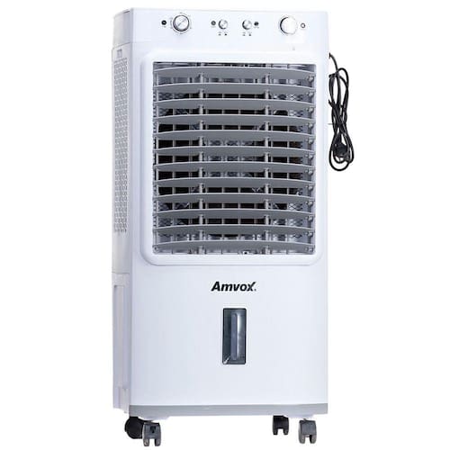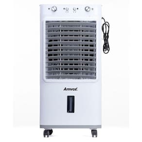 Características: Marca: Amvox Modelo: 30132 Tipo: Climatizador de ar Ciclo de ar: Frio Painel: Manual Funções: Resfria Timer: Não Velocidades: 4 velocidades Nível de ruído: Baixo Dispenser de água: Sim Controle remoto: Não Direcionadores de ar: Sim Rodízios: Sim Alça para transporte: Não Potência: 100W