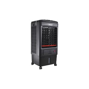 Climatizador de ar evaporativo portátil com 3 em 1: climatiza, umidifica e ventila. Possui 3 velocidades, swing automático, aletas móveis e rodas para transporte. Inclui 2 placas de gel reutilizáveis.Tempo de aquecimento