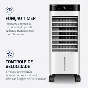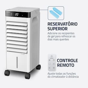 Com design funcional na cor branca, o climatizador é fácil de transportar e se adapta perfeitamente a diferentes ambientes, como quartos, salas e escritórios. Seu funcionamento em 220V / 60Hz garante desempenho eficiente para o uso diário.