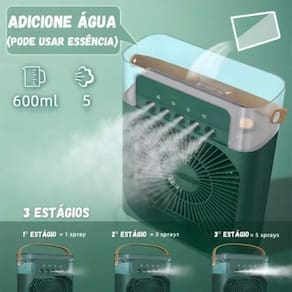 Climatizador de Ar Portátil Multifuncional Leve e Eficiente com Reservatório para Aromatizador Ambiente 110V