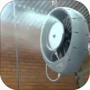 Como Funciona:Uma Pequena Quantidade De Água É Evaporada é Lançada Através Do Processo De Centrifugação Em Disco. O Vapor Frio Expelido é micro fino evaporando rapidamente, extraindo o Calor Do Ar e Diminuindo A Temperatura Em Até 10c, Dependendo Das Condições do Ambiente.
