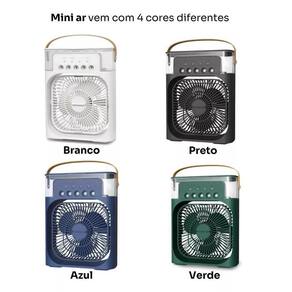 Climatizador portátil frio Ultra Com Reservatório de Água Cor: verde O mini climatizador portátil possui três Níveis de Refrigeração: Refresque o ambiente por meio da evaporação da água, ajustando entre três diferentes velocidades para garantir o máximo conforto.