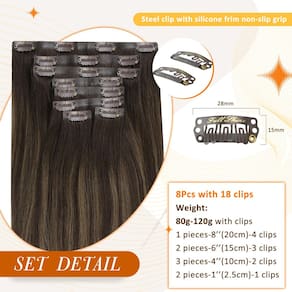 Você está procurando um conjunto perfeito de clipes que sejam 100% invisíveis e discretos e não danifiquem seu cabelo Extensões de cabelo sem costura com clipe de cabelo humano real são os melhores! Estes são o investimento perfeito para uma linda cabeça inteira de cabelo, onde ninguém será capaz de dizer que você está usando extensões de cabelo. É hora de jogar fora aqueles clipes volumosos e trocá-los por clipes invisíveis sem costura Mais cores modernas, balayage, destaques, extensões de cabelo Remy com clipe ombré 1) Invisível e mais leve 2) Tecnologia de fabricação ecológica 3) 100% cabelo humano 4) Tecnologia anti-queda Leia antes de fazer o pedido 1) Diferenças de cor não podem ser evitadas, pois diferentes monitores e luzes mostrarão a cor de forma diferente. O cabelo é um clipe de trama dupla em extensões de cabelo humano, há cabelo curto. 1 conjunto é para volume normal de cabelo, e para cabelos grossos, sugerimos usar 2 pacotes ou adicionar um clipe de 3 peças em extensões. Aceitamos pedidos personalizados. Cuidados e uso Sobre a coloração: o cabelo pode ser colorido. Como regra geral, é mais fácil escurecer o cabelo do que clarear o cabelo. Mas sempre teste uma pequena amostra primeiro. Sobre a lavagem: lave suavemente as extensões de cabelo em água morna, aplique um pouco de xampu sem sulfato, enxágue o xampu e aplique condicionador hidratante. Sobre o pente: Antes e depois do uso, lembre-se de escovar suas extensões de cabelo gentilmente com uma escova de cerdas macias; certifique-se de que todos os nós e emaranhados tenham desaparecido! Desejamos que todos os clientes tenham um bom dia com Full Shine Hair, obrigado! - Macio e suave ao toque: Feito de cabelo humano Remy, as extensões de cabelo sem costura Full Shine têm uma textura suave e sedosa que é macia ao toque; ideal para aqueles que procuram cabelos luxuosos e com aparência natural - Atualize para a trama de poliuretano de borda invisível: a borda externa estreita e a ampla faixa interna de poliuretano garantem um ajuste natural; a trama ultrafina de poliuretano permite um ajuste respirável e leve, garantindo conforto durante todo o dia sem sentir pesado no couro cabeludo - Variedade de comprimentos e pesos: escolha entre extensões de 30,5 cm (95 g), 35,6-56 cm (120 g) para atender às suas necessidades de estilo; cada pacote inclui diferentes larguras de trama para atender a várias partes da sua cabeça, permitindo opções de estilo personalizadas - Aumento de volume sem esforço: adicione volume instantaneamente a cabelos finos ou lisos com apenas um pacote; para aqueles que procuram o volume máximo, 2-3 conjuntos de extensões de clipe podem ser utilizados juntos, oferecendo uma aparência exuberante e volumosa - Suave no couro cabeludo: os clipes de silicone são macios e suaves, evitando irritação ou desconforto; perfeitos para pessoas com couro cabeludo sensível ou cabelos finos; feitos especialmente para misturar com cabelos finos ou finos, oferecendo volume sem causar danos - Perfeito para qualquer ocasião: seja um casamento, festa ou encontro noturno, as extensões de cabelo humano com clipe invisível são fáceis de aplicar e remover, oferecendo infinitas opções de estilo que se adaptam Full Shine todos os eventos - Clipes de boa qualidade para fixação segura: cada trama é equipada com clipes de silicone premium que fornecem uma aderência firme e segura; perfeito para uso durante todo o dia sem escorregar ou puxar - : disponível em uma ampla variedade de tons, incluindo cores lisas, balayage e destaques; habilmente projetado para misturar com o seu cabelo para um estilo chique e versátil - Adequado para todos os tipos de cabelo: Se o seu cabelo é liso, ondulado ou encaracolado, essas extensões se adaptam à sua textura natural, proporcionando uma aparência impecável e coesa com qualquer estilo
