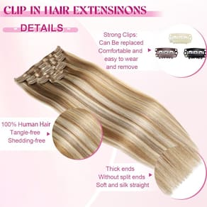 Apresentamos as extensões de cabelo POGINJA Clip in Hair - a solução perfeita para aqueles que buscam extensões de cabelo humano de qualidade premium que sejam fáceis de manter e pentear. Nossas extensões de encaixe são feitas de cabelo humano real de alta qualidade, sem emaranhamento e sem queda, proporcionando uma sensação suave e macia. O design de trama dupla de nossas extensões evita quedas, enquanto os clipes macios cobertos de borracha garantem conforto e protegem o couro cabeludo durante o uso. Fácil de enrolar e misturar perfeitamente com cabelo natural, estes clipes são recomendados para 3-4 meses de uso com cuidados adequados. Escolha entre uma variedade de pacotes para alcançar o volume desejado, disponível em comprimentos que variam de 35 a 61 cm e pesos entre 80 a 120 g, com 8 peças incluídas em cada conjunto. Nossas extensões de cabelo com clipe vêm com uma política de devolução de 30 dias para garantir a satisfação do cliente. Se você estiver procurando extensões de cabelo presas para uso diário ou ocasiões especiais, as extensões de cabelo POGINJA Clip in Hair são a escolha ideal. Sem queda ou emaranhamento, fácil aplicação e remoção e dicas de cuidados fornecidas para longevidade, essas extensões são projetadas para atender às suas necessidades de estilo. Invista em extensões de cabelo humano reais da POGINJA e aproveite os benefícios de um cabelo de alta qualidade que parece e parece natural. A satisfação do cliente é nossa prioridade, e nosso serviço pós-venda está disponível para resolver quaisquer problemas que possam surgir. Melhore sua beleza natural com as extensões de cabelo POGINJA Clip in - a mistura perfeita de estilo, qualidade e conveniência para mulheres que buscam o melhor em extensões de cabelo. Experimente agora e experimente você mesmo a diferença! - ?Material de extensões de cabelo com clipe?: Extensões de cabelo de qualidade de salão, clipe 100% remy premium em cabelo humano, sem emaranhamento, sem queda. O cabelo é macio e macio. Nossas extensões de cabelo podem ser enroladas como você quiser. Pode durar de 3 a 4 meses com bom cuidado. Escolhemos cabelos de alta qualidade, tão bons quanto o seu próprio cabelo. - ?Transformação rápida e fácil?: Transforme seu visual em minutos com extensões de encaixe. Estas extensões são projetadas para facilitar o uso, permitindo que você adicione volume ou comprimento instantaneamente. Perfeito para ocasiões especiais ou uma simples mudança de estilo, estas extensões são o seu segredo para o cabelo de qualidade de salão em casa. - ?Antiqueda, invisível e seguro?: Nossas extensões de cabelo com clipe são usadas de trama dupla, que é mais durável e não cai. Os clipes são cobertos com uma camada de borracha macia para proteger cuidadosamente seu couro cabeludo e cabelo. Oferece um ajuste seguro sem a necessidade de cola ou fita. As extensões são leves e confortáveis, garantindo uma aparência natural que mantém você confiante durante todo o dia. - ?Grampo de cabelo humano em detalhes de extensões?: 100% clipe Remy premium em cabelo humano, 8 peças 80-120 g com 18 clipes por conjunto. O comprimento para extensões de cabelo humano com clipes retos: 35,56-61 cm. De acordo com o volume do seu cabelo, geralmente 1-2 pacotes podem preencher toda a sua cabeça, aumentando o comprimento e o volume. Se você precisa de cabelo grosso, recomendamos comprar mais de 2 pacotes para alcançar um resultado perfeito. - ?Serviço excepcional e satisfação?: 30 dias sem motivo para devolução, se o produto não satisfizer você sobre extensões de cabelo com clipe, por e-mail, faremos o nosso melhor para ajudá-lo a resolver o problema do produto rapidamente! Captura de luz, função da câmera, monitores diferentes e outros fatores afetam, a cor que aparece na sua tela pode ser diferente. Se você não tiver certeza se a cor combina com você, antes de comprar.