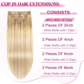 Apresentamos as extensões de cabelo POGINJA Clip in Hair - a solução perfeita para aqueles que buscam extensões de cabelo humano de qualidade premium que sejam fáceis de manter e pentear. Nossas extensões de encaixe são feitas de cabelo humano real de alta qualidade, sem emaranhamento e sem queda, proporcionando uma sensação suave e macia. O design de trama dupla de nossas extensões evita quedas, enquanto os clipes macios cobertos de borracha garantem conforto e protegem o couro cabeludo durante o uso. Fácil de enrolar e misturar perfeitamente com cabelo natural, estes clipes são recomendados para 3-4 meses de uso com cuidados adequados. Escolha entre uma variedade de pacotes para alcançar o volume desejado, disponível em comprimentos que variam de 35 a 61 cm e pesos entre 80 a 120 g, com 8 peças incluídas em cada conjunto. Nossas extensões de cabelo com clipe vêm com uma política de devolução de 30 dias para garantir a satisfação do cliente. Se você estiver procurando extensões de cabelo presas para uso diário ou ocasiões especiais, as extensões de cabelo POGINJA Clip in Hair são a escolha ideal. Sem queda ou emaranhamento, fácil aplicação e remoção e dicas de cuidados fornecidas para longevidade, essas extensões são projetadas para atender às suas necessidades de estilo. Invista em extensões de cabelo humano reais da POGINJA e aproveite os benefícios de um cabelo de alta qualidade que parece e parece natural. A satisfação do cliente é nossa prioridade, e nosso serviço pós-venda está disponível para resolver quaisquer problemas que possam surgir. Melhore sua beleza natural com as extensões de cabelo POGINJA Clip in - a mistura perfeita de estilo, qualidade e conveniência para mulheres que buscam o melhor em extensões de cabelo. Experimente agora e experimente você mesmo a diferença! - ?Material de extensões de cabelo com clipe?: Extensões de cabelo de qualidade de salão, clipe 100% remy premium em cabelo humano, sem emaranhamento, sem queda. O cabelo é macio e macio. Nossas extensões de cabelo podem ser enroladas como você quiser. Pode durar de 3 a 4 meses com bom cuidado. Escolhemos cabelos de alta qualidade, tão bons quanto o seu próprio cabelo. - ?Transformação rápida e fácil?: Transforme seu visual em minutos com extensões de encaixe. Estas extensões são projetadas para facilitar o uso, permitindo que você adicione volume ou comprimento instantaneamente. Perfeito para ocasiões especiais ou uma simples mudança de estilo, estas extensões são o seu segredo para o cabelo de qualidade de salão em casa. - ?Antiqueda, invisível e seguro?: Nossas extensões de cabelo com clipe são usadas de trama dupla, que é mais durável e não cai. Os clipes são cobertos com uma camada de borracha macia para proteger cuidadosamente seu couro cabeludo e cabelo. Oferece um ajuste seguro sem a necessidade de cola ou fita. As extensões são leves e confortáveis, garantindo uma aparência natural que mantém você confiante durante todo o dia. - ?Grampo de cabelo humano em detalhes de extensões?: 100% clipe Remy premium em cabelo humano, 8 peças 80-120 g com 18 clipes por conjunto. O comprimento para extensões de cabelo humano com clipes retos: 35,56-61 cm. De acordo com o volume do seu cabelo, geralmente 1-2 pacotes podem preencher toda a sua cabeça, aumentando o comprimento e o volume. Se você precisa de cabelo grosso, recomendamos comprar mais de 2 pacotes para alcançar um resultado perfeito. - ?Serviço excepcional e satisfação?: 30 dias sem motivo para devolução, se o produto não satisfizer você sobre extensões de cabelo com clipe, por e-mail, faremos o nosso melhor para ajudá-lo a resolver o problema do produto rapidamente! Captura de luz, função da câmera, monitores diferentes e outros fatores afetam, a cor que aparece na sua tela pode ser diferente. Se você não tiver certeza se a cor combina com você, antes de comprar.
