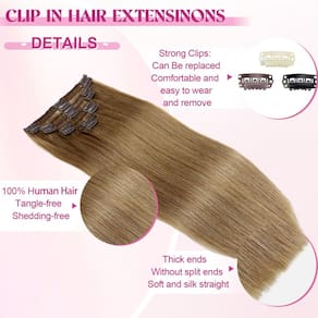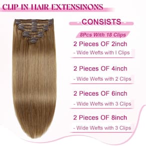 Apresentamos as extensões de cabelo POGINJA Clip in Hair - a solução perfeita para aqueles que buscam extensões de cabelo humano de qualidade premium que sejam fáceis de manter e pentear. Nossas extensões de encaixe são feitas de cabelo humano real de alta qualidade, sem emaranhamento e sem queda, proporcionando uma sensação suave e macia. O design de trama dupla de nossas extensões evita quedas, enquanto os clipes macios cobertos de borracha garantem conforto e protegem o couro cabeludo durante o uso. Fácil de enrolar e misturar perfeitamente com cabelo natural, estes clipes são recomendados para 3-4 meses de uso com cuidados adequados. Escolha entre uma variedade de pacotes para alcançar o volume desejado, disponível em comprimentos que variam de 35 a 61 cm e pesos entre 80 a 120 g, com 8 peças incluídas em cada conjunto. Nossas extensões de cabelo com clipe vêm com uma política de devolução de 30 dias para garantir a satisfação do cliente. Se você estiver procurando extensões de cabelo presas para uso diário ou ocasiões especiais, as extensões de cabelo POGINJA Clip in Hair são a escolha ideal. Sem queda ou emaranhamento, fácil aplicação e remoção e dicas de cuidados fornecidas para longevidade, essas extensões são projetadas para atender às suas necessidades de estilo. Invista em extensões de cabelo humano reais da POGINJA e aproveite os benefícios de um cabelo de alta qualidade que parece e parece natural. A satisfação do cliente é nossa prioridade, e nosso serviço pós-venda está disponível para resolver quaisquer problemas que possam surgir. Melhore sua beleza natural com as extensões de cabelo POGINJA Clip in - a mistura perfeita de estilo, qualidade e conveniência para mulheres que buscam o melhor em extensões de cabelo. Experimente agora e experimente você mesmo a diferença! - ?Material de extensões de cabelo com clipe?: Extensões de cabelo de qualidade de salão, clipe 100% remy premium em cabelo humano, sem emaranhamento, sem queda. O cabelo é macio e macio. Nossas extensões de cabelo podem ser enroladas como você quiser. Pode durar de 3 a 4 meses com bom cuidado. Escolhemos cabelos de alta qualidade, tão bons quanto o seu próprio cabelo. - ?Transformação rápida e fácil?: Transforme seu visual em minutos com extensões de encaixe. Estas extensões são projetadas para facilitar o uso, permitindo que você adicione volume ou comprimento instantaneamente. Perfeito para ocasiões especiais ou uma simples mudança de estilo, estas extensões são o seu segredo para o cabelo de qualidade de salão em casa. - ?Antiqueda, invisível e seguro?: Nossas extensões de cabelo com clipe são usadas de trama dupla, que é mais durável e não cai. Os clipes são cobertos com uma camada de borracha macia para proteger cuidadosamente seu couro cabeludo e cabelo. Oferece um ajuste seguro sem a necessidade de cola ou fita. As extensões são leves e confortáveis, garantindo uma aparência natural que mantém você confiante durante todo o dia. - ?Grampo de cabelo humano em detalhes de extensões?: 100% clipe Remy premium em cabelo humano, 8 peças 80-120 g com 18 clipes por conjunto. O comprimento para extensões de cabelo humano com clipes retos: 35,56-61 cm. De acordo com o volume do seu cabelo, geralmente 1-2 pacotes podem preencher toda a sua cabeça, aumentando o comprimento e o volume. Se você precisa de cabelo grosso, recomendamos comprar mais de 2 pacotes para alcançar um resultado perfeito. - ?Serviço excepcional e satisfação?: 30 dias sem motivo para devolução, se o produto não satisfizer você sobre extensões de cabelo com clipe, por e-mail, faremos o nosso melhor para ajudá-lo a resolver o problema do produto rapidamente! Captura de luz, função da câmera, monitores diferentes e outros fatores afetam, a cor que aparece na sua tela pode ser diferente. Se você não tiver certeza se a cor combina com você, antes de comprar.